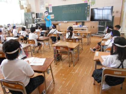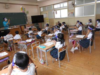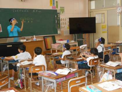 7/7 1年生 音楽の学習・・・ 公開日 2020/07/07 更新日 2020/07/15 1年 音楽の学習をしていました。 空調を入れて、窓と扉を少し開けて、換気もしています。 歌を歌うので、フェイスシールドもつけていますが・・・ 少し外してしまう子もいます。 「じゃんけん ポン!」や「リズム遊び」を・・・ 元気のいい子たちですね! いいね(0)