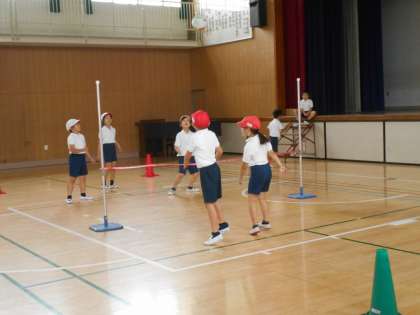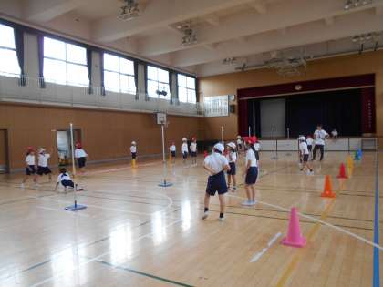 3年生は、体育館で、「プレルボール」の学習をしていました。