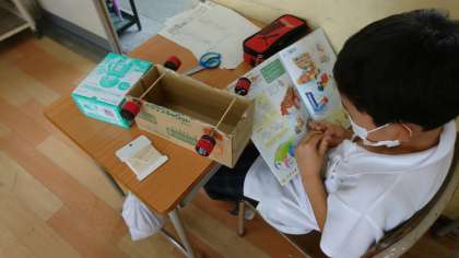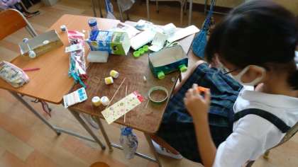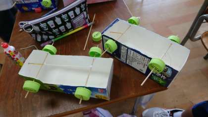 ゴー!ゴー!ドリームカー 4年 公開日 2020/07/09 更新日 2020/07/15 4年 4年生が、箱を使って工作をしていました。 ペットボトルのキャップをタイヤにして、ゴムの力で動く車を作っています。 きれいに飾りをつけたり、どうすればうまく走るか考えたりしていました。 完成するのが楽しみですね。 いいね(0)