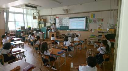 朝の英語1年 公開日 2020/07/15 更新日 2020/07/15 1年 1年生の教室から、元気な英語の声が聞こえてきました。 「Good Morning!」「AA・・・Apple♪」「BB・・・Book♪」 楽しそうに発音する姿が微笑ましかったです。 いいね(0)