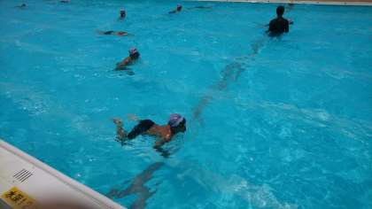 足をつかないように 泳ぎます