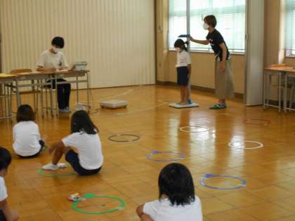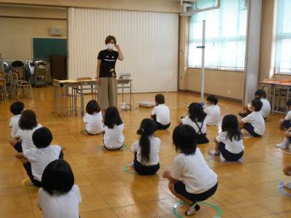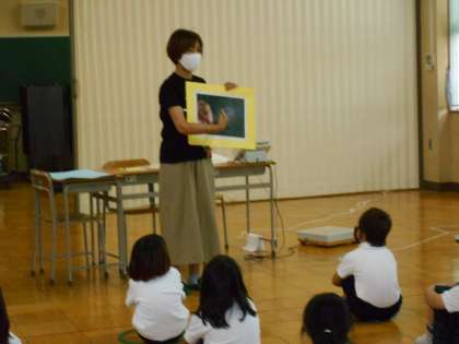 保健室の先生が、「マスクとくしゃみについて」「手洗いの大切さ」など、コロナウィルス対策のお話を、分かりやすくしていました。
