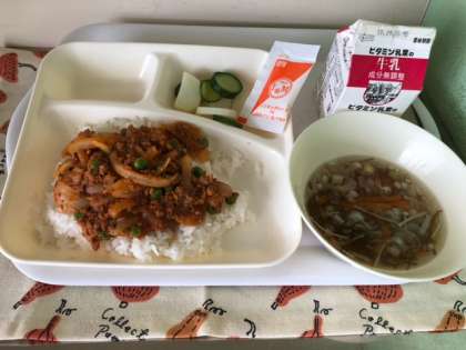 今日の給食 公開日 2020/10/13 更新日 2020/10/13 その他 ・タコライス ・じゃがいもときゅうりのサラダ ・もずくのスープ ・牛乳 タコライスは沖縄料理のひとつで、カレー粉やケチャップで味付けをしています。 いいね(0)