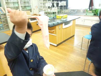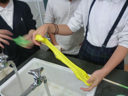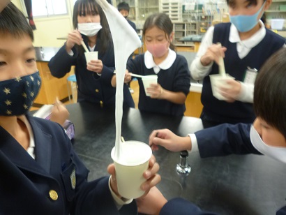 科学クラブ「ふわふわスライム」 公開日 2020/12/17 更新日 2020/12/17 その他 今日は、「ふわふわスライム」を作りました。 材料は「洗濯のり」「シェービングフォーム」「ホウ砂」です。 今回は、6年生が計画し、他のの子への説明や補助もしてくれました。 最高学年として、しっかり活躍してくれました。 ふわふわで、マシュマロのようなおもちのようなスライムの出来上がりです。 いいね(0)