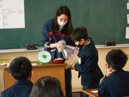 2/12 4年生 食に関する学習 公開日 2021/02/12 更新日 2021/02/12 4年 栄養教諭による「食に関する指導」がありました。 「野菜について考えよう」というテーマで、1日に必要な野菜の量などについて学習しました。 「300gのキャベツ」を確認していました。 感想には、「好き嫌いを減らす」や「嫌いな野菜も、少しずつ食べてみる」など、学習した内容が生きていました。 お家でも、話を聞いてみてください! いいね(0)
