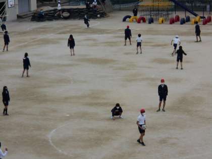 2/12 6年生 体育の学習 公開日 2021/02/12 更新日 2021/02/12 6年 最近、6年生は「合体(合同体育)」をよくしています。 卒業前に、学年全体で、楽しく学習しています。 今日は、「キックベースボール」です。 キャッキャッ言いながら、ボールを蹴ったり、追いかけたりしていました。 いいね(0)