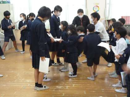 卒業を祝う会 公開日 2021/03/05 更新日 2021/03/05 その他 今年は、各学年で作成したお祝いの動画を、教室で視聴する形で行いました。 歌やダンスなど、お祝いの気持ちが伝わりました。 最後は、全学年が「ありがとうの花」を歌う中を、6年生が練り歩きました。 小学校生活もあと少しです。 6年生のみなさん、今までよくがんばりました。 いいね(0)