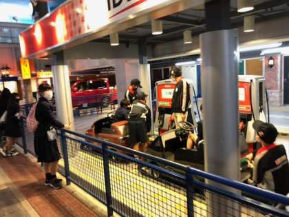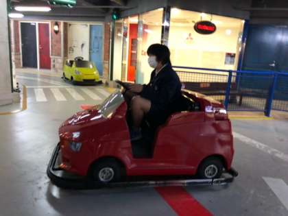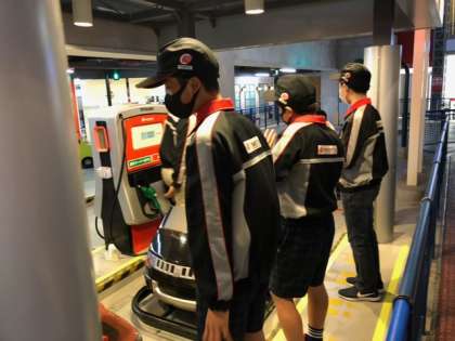 ガソリンスタンドでのお仕事。元気に手を振り、笑顔でお見送りです♪