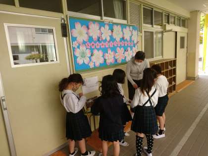 2年生はすっかりお兄さん、お姉さんになりました。 1年生を優しくリードしてあげていましたよ。
