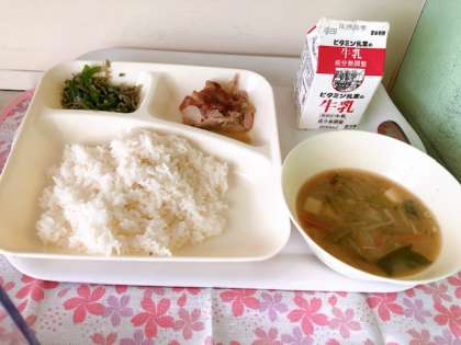 今日の給食 公開日 2021/04/23 更新日 2021/04/23 その他 「豚肉のしょうが焼き」は、味付け、焼き方ともに抜群でごはんがすすみます。 「じゃこピーマン」は、じゃこの旨味とピーマンの苦みで、これもごはんがすすみます。 「みそ汁」も具だくさんでおかず感覚。これまたごはんによく合いました。 来週からの対応で子どもも大人のみんな大変です。 しかし、今日のごはんで元気モリモリ!がんばれそうです! 今日もごちそうさまでした。 いいね(0)