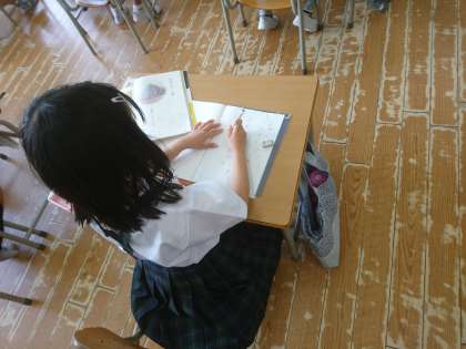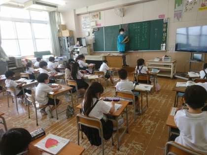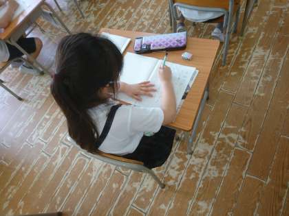 黒板を見ながら「さとうとしお」の文章を視写しました。 良い姿勢です!