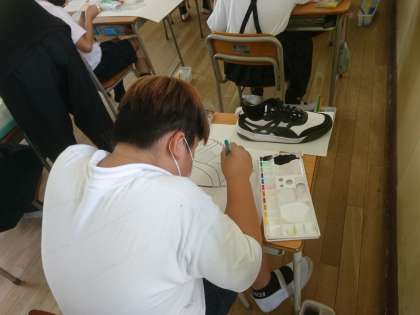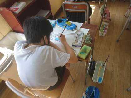自分の靴を描いていました。 細かい線までよく見ています。
