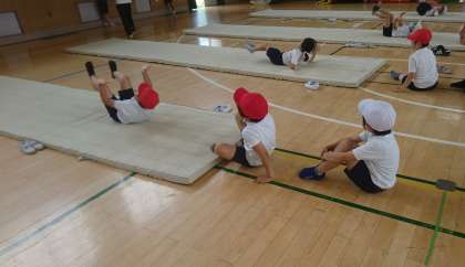 鉄棒とマット運動をがんばっています!