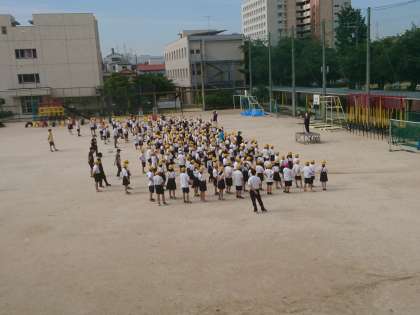 全校朝会 公開日 2021/06/21 更新日 2021/06/21 その他 先週まではTeamsを使って朝会をしていましたが、今週から運動場での朝会を再開しました。 しかし、緊急事態宣言が解除されたからといって、劇的に感染リスクが下がったわけではありません。 今後も、引き続き校内での感染症対策をしっかりやっていきます。 いいね(0)
