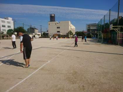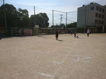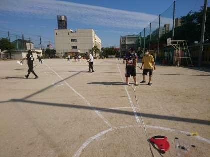 ソフトボール投げに向けて、放課後にラインを引きました。