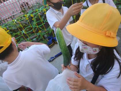 野菜の収穫 2年 公開日 2021/06/29 更新日 2021/06/30 2年 なすときゅうりが実っています。 立派に育っているものから順に、2年生が収穫して持って帰ります。 「こことげとげしてる!」など、実際にさわったからこそ気づくこともあったようです。 成長を見守ってきた野菜たち。お家で食べるのが楽しみですね。 いいね(0)