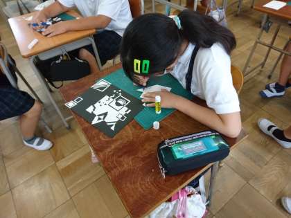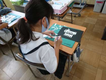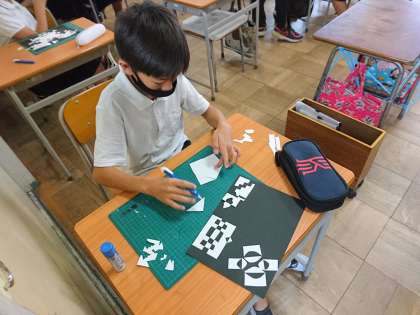 線対称や点対称の形を使って、白黒の世界を表現しています。