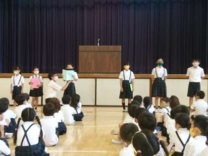 1学期終業式 公開日 2021/07/20 更新日 2021/07/20 その他 1学期も今日で最後です。 終業式では、代表児童による作文の発表、漢字、計算チャレンジの表彰もありました。 色々な場面で子どもたちのがんばりが見られた1学期。 暑さに負けず、元気に夏休みを過ごしてほしいと思います。 いいね(0)