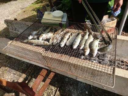 つかんだ魚は、その場ですぐ塩焼きにしました。