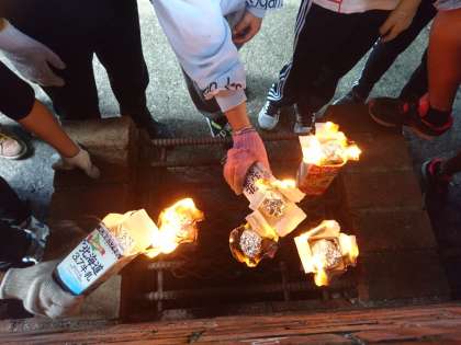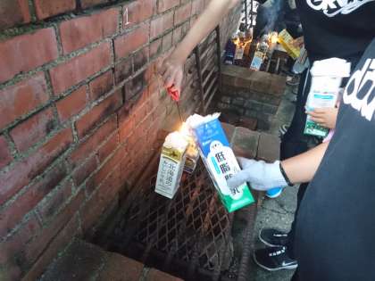 牛乳パックを燃やして、燃えきったら完成です。