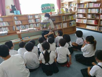 図書館補助で来ていただいている先生に、紙芝居を読んでいただきました。