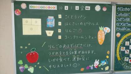 今日の給食 公開日 2021/10/01 更新日 2021/10/01 その他 シチューは具材がゴロゴロたっぷり、クリーミーでとてもおいしかったです。パンとの相性も抜群です。 はくさいのピクルスは、あっさりしていて食べやすかったです。 りんごはシャキシャキ、皮も柔らかくておいしかったです。 今日もごちそうさまでした。 いいね(0)