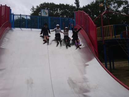 雨がポツリときて心配でしたが、大丈夫です。 やんちゃの里で思いっきり遊んでいます。