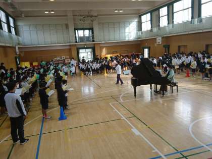 音楽集会 公開日 2021/10/21 更新日 2021/10/21 その他 コロナが流行してからなかなかできていなかった音楽集会ですが、感染対策をしっかりして、本当に久しぶりに実施しました。 100周年に向けて、校歌やつるまちソングの練習をしましたが、朝から子どもたちの歌声が聴けるのはとても気持ちがいいです。 いいね(0)