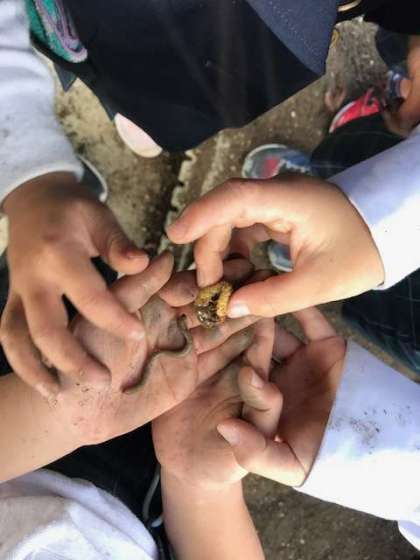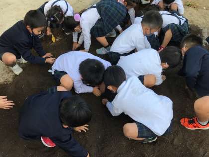 大きなおイモがいっぱいとれたよ。 いつの間にか…土遊びになって… ミミズもよう虫もみつけたよ。