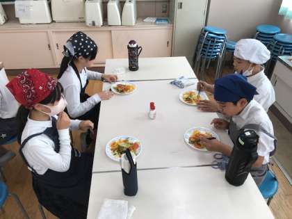 美味しく出来ましたが、振り返りも忘れていません。炒め方や味付け方、盛り付けの仕方などの良かったところなどを考えました。