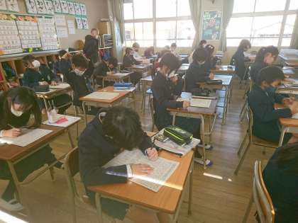 2学期末の漢字チャレンジに向けて、集中して練習問題に取り組んでいました。