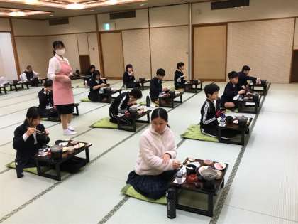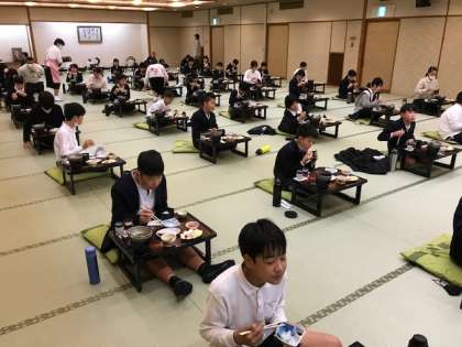 ボリューム満点の朝ごはんを美味しくいただきました。なかにはおかわりをする子たちもいました。これからの活動のためにしっかりと食べることが出来ました。