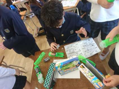乾電池や豆電球でライトを作りました。
