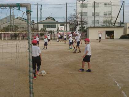 外で活動するグループは、元気にサッカーとバスケットボールをしました!