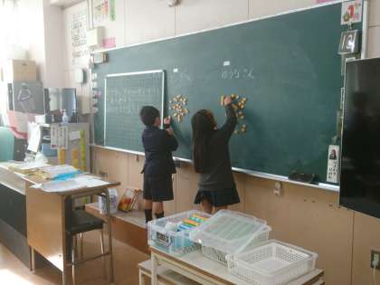 ブロックを使って、数え方を考えます。 10のまとまりを作ると数えやすいということに気づいていました。