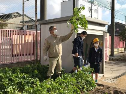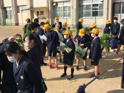 今日は6年生がダイコンの収穫をしました。