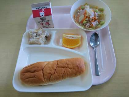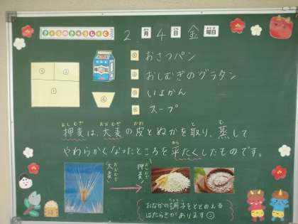 押し麦のグラタンは、麦がたっぷりでボリュームがあり、クリーミーでとてもおいしいです。ふわふわのおさつパンとの相性もバッチリです。