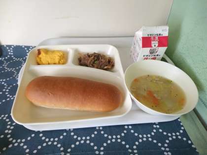 コーンスープは、とうもろこしの甘みが引き出されていて、黒糖パンにとてもよく合います。