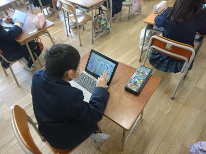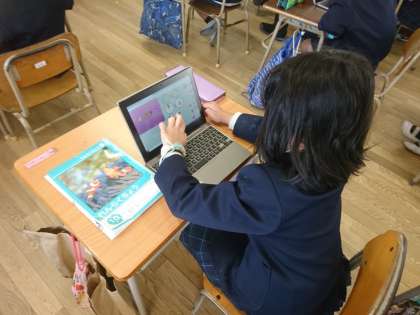 低学年でも、タブレットを使うのに慣れてきました。