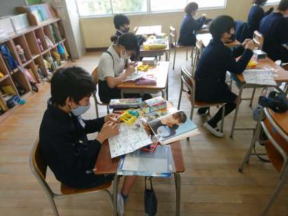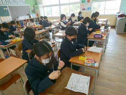 電磁石の学習で、コイルを巻いています。 からまないように、巻き数を間違えないように…慎重にやっていました。