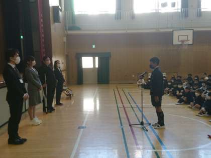 本年度も教職員の入れ替わりがありました。 児童代表が、立派にあいさつしてくれました。