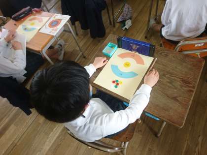おはじきゲームに取り組んで、得点の求め方を考えました。