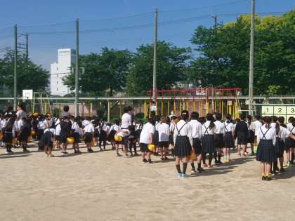 気持ちのよい天気の中で朝会ができました。