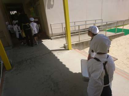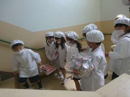 先週までは6年生が給食を運んでくれていましたが、今日から自分たちで運びます。
