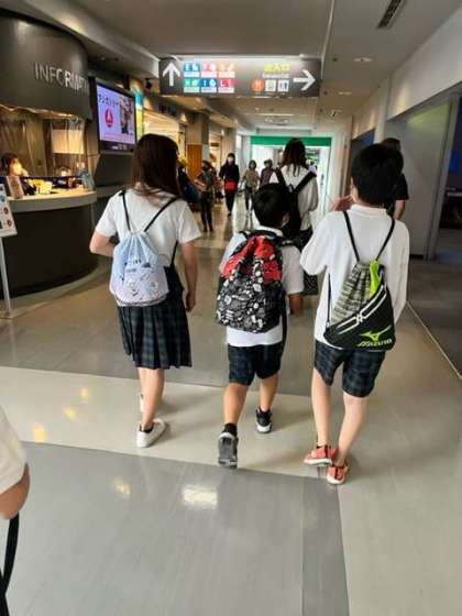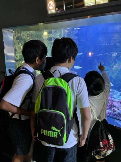 鳥羽水族館に着きました。それぞれ、グループに分かれて魚たちと触れ合っています。