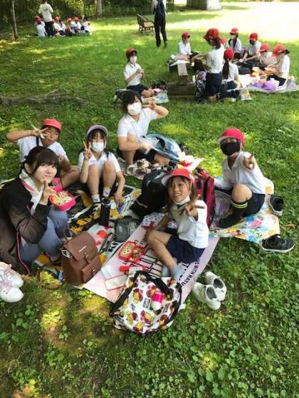 しっかりと遊んだ後は、待ちに待ったお弁当&おやつタイムです。みんなで美味しい弁当をいただきましょう。