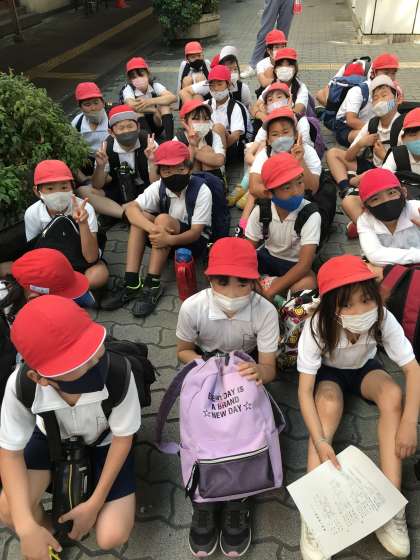 暑くてすでに水筒が空っぽの子も何人かいるけど、もう少しで学校に帰れるので、がんばろう。