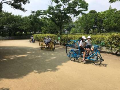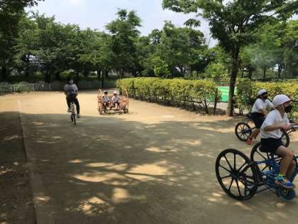 4年の遠足 公開日 2022/05/26 更新日 2022/05/26 その他 自転車ひろばに着いて、係の人から説明を聞いて、体験しています。 古い時代の自転車に乗ります。 1人乗り、2人乗り、3人乗りなどいろんなタイプの自転車です。 いいね(0)