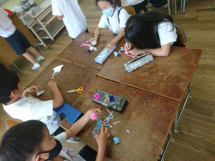 あじさいを作っていました。 みんなが作ったものを集めると、カラフルなあじさいになりそうですね。