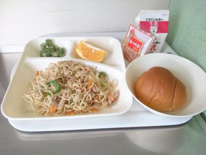 和風やきそばは、子どもたちが食べる頃にも麺がのびないように、絶妙のゆで加減です。かつおぶしやパンにも合います。